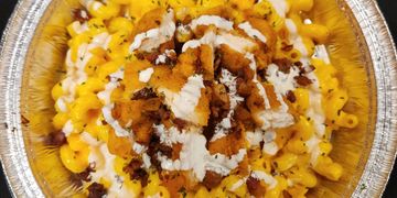 cavatappi pasta, cheddar cheese sauce, fried chicken, bacon & cheddar jack. Served with a side of ranch